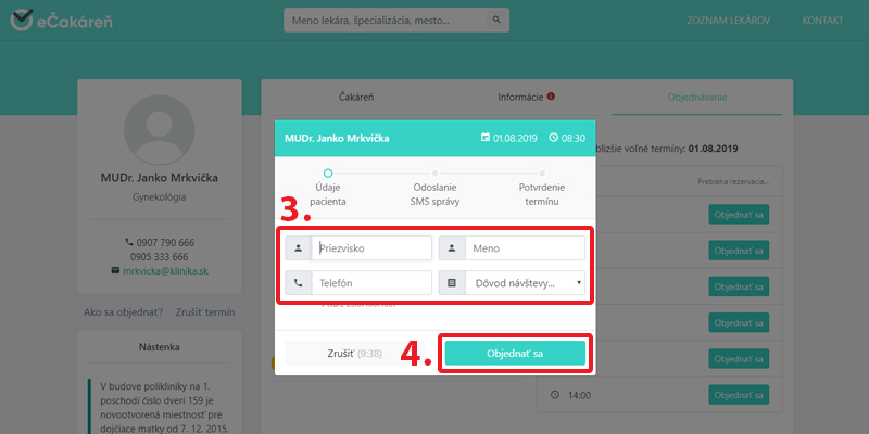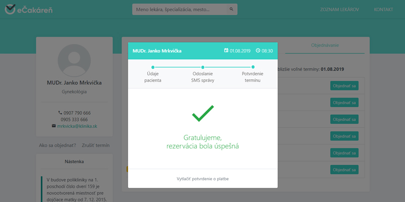 Prihlasovanie do poradia v čakárni sa spúšťa 15 minút pred začiatkom ordinácie.Ak je PRIHLASOVANIE POZASTAVENÉ, termíny na daný deň sú obsadené. Čas vypočítaný systémom je len orientačný, závisí od dĺžky vyš. pac. pred vami. Ak chcete vyšetrenie na presný čas, objednajte sa cez OBJEDNÁVANIE.